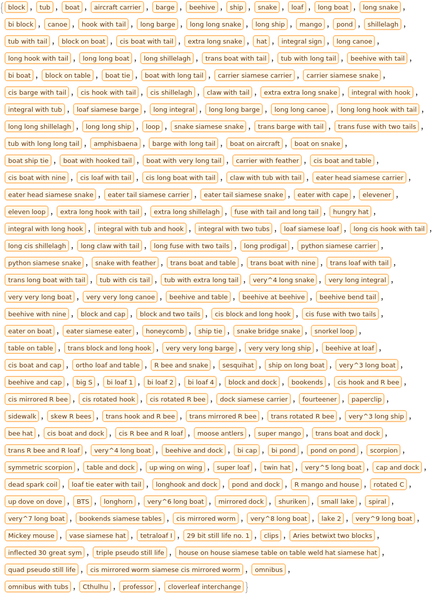Keys[Select[EntityValue["GameOfLife","PatternType","EntityAssociation"],#==="StillLife"&]]