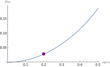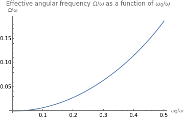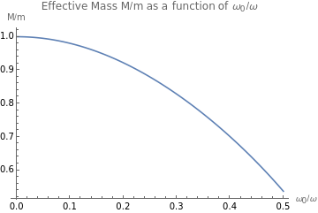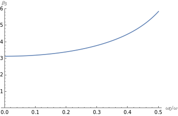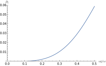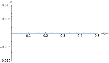 ListPlot[dataβ1,AxesLabel{"/ω",""},PlotRange{0.0,0.06},JoinedTrue]ListPlot[dataβ2,AxesLabel{"/ω",""},PlotRange{-0.01,0.01},JoinedTrue]ListPlot[dataβ3,AxesLabel{"/ω",""},PlotRange{0,6.0},JoinedTrue]ListPlot[dataM,AxesLabel{"/ω","M/m"},PlotLabel"Effective Mass M/m as a function of /ω",JoinedTrue]ListPlot[dataΩ,AxesLabel{"/ω","Ω/ω"},PlotLabel"Effective angular frequency Ω/ω as a function of /ω",JoinedTrue]