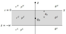 - Magnetic permeabilities: μU (z>0), μC (0>z>-w), μL (-w>z)