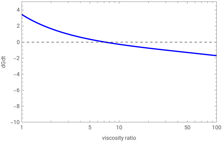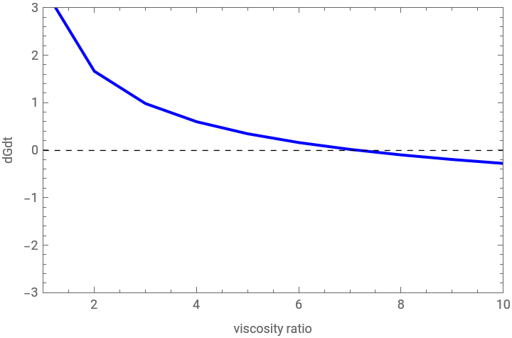 ListPlot[{dGdttab,zeroline},FrameTrue,AxesFalse,PlotRange{{min,max},{-3,3}},JoinedTrue,FrameLabel{"viscosity ratio","dGdt"},PlotStyle{{RGBColor[0,0,1]},{RGBColor[0,0,0],Thickness[0.002],Dashed}}]
