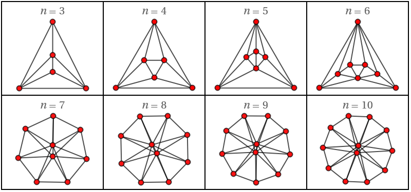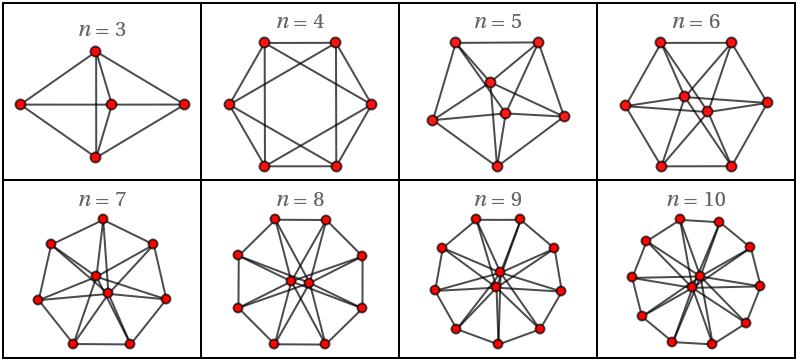 GraphicsGrid[Partition[Table[Show[DipyramidalGraph[n]//StyleGraphs[#,VertexSize{"Scaled",.05}]&,PlotLabelStyle[HoldForm[n]n,FontFamily"Times"]],{n,3,10}],4],ImageSize400,DividersAll]