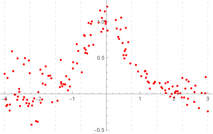 distData=Tablex,Exp[-x^2]+RandomVariateNormalDistribution0,.15
