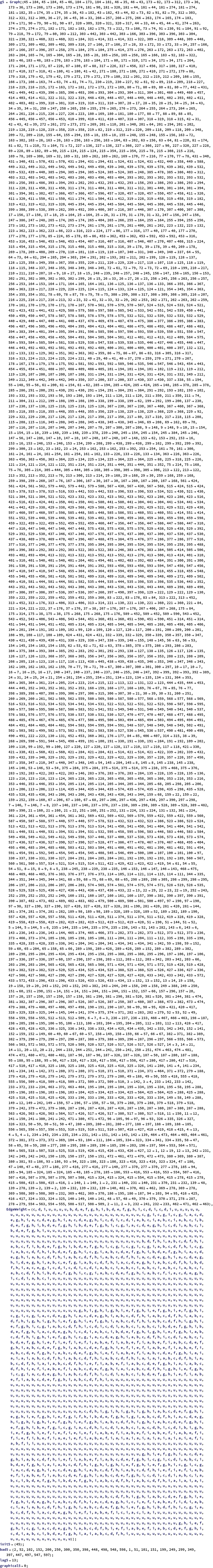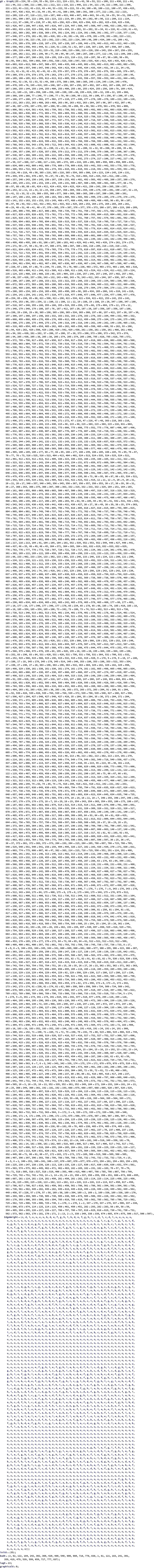 {{84,{}}{b,e,f,g,h,i},{28,{}}{c,d,i},{50,{}}{g,i},{162,{}}{},{22,{}}{c,d},{134,{}}{a,b},{78,{}}{b,i},{54,{}}{c,g,i},{166,{}}{},{26,{}}{c,d},{138,{}}{a,b},{82,{}}{b,i},{98,{}}{},{70,{}}{e,f,g,h,i},{42,{}}{g},{112,{}}{f},{56,{}}{g,i},{104,{}}{f},{76,{}}{b},{48,{}}{i},{210,{}}{},{182,{}}{f},{154,{}}{e},{224,{}}{},{196,{}}{f},{168,{}}{e},{216,{}}{},{188,{}}{},{160,{}}{},{14,{}}{c,d,i},{20,{}}{},{126,{}}{a,b,i},{140,{}}{a,b,i},{132,{}}{},{108,{}}{f,i},{80,{}}{b},{52,{}}{c,i},{220,{}}{},{192,{}}{},{164,{}}{a},{24,{}}{},{136,{}}{},{148,{}}{e,g,h,i},{92,{}}{},{106,{}}{},{36,{}}{},{8,{}}{c,d},{120,{}}{a,b,c,i},{64,{}}{d,g,h,i},{110,{}}{f,i},{46,{}}{c,i},{158,{}}{},{102,{}}{f,i},{18,{}}{},{130,{}}{},{74,{}}{},{204,{}}{e,f},{218,{}}{},{176,{}}{a,b,f,i},{190,{}}{},{222,{}}{},{194,{}}{},{214,{}}{},{186,{}}{},{90,{}}{h},{202,{}}{e,f,i},{62,{}}{d},{174,{}}{a,b,i},{146,{}}{c,d,g,h,i},{34,{}}{},{6,{}}{},{118,{}}{c},{96,{}}{i},{68,{}}{},{40,{}}{c},{100,{}}{f,i},{72,{}}{b},{44,{}}{c,i},{208,{}}{},{180,{}}{},{152,{}}{a},{212,{}}{},{184,{}}{},{156,{}}{a},{12,{}}{},{16,{}}{},{124,{}}{},{128,{}}{},{32,{}}{},{144,{}}{a,i},{88,{}}{h,i},{200,{}}{e,f},{4,{}}{},{116,{}}{},{60,{}}{},{172,{}}{a,b},{38,{}}{c,i},{150,{}}{a,i},{94,{}}{f,h,i},{10,{}}{},{122,{}}{},{66,{}}{},{206,{}}{e,f},{178,{}}{a,b},{86,{}}{h,i},{58,{}}{d},{30,{}}{c},{198,{}}{e,f,i},{170,{}}{a,b,i},{142,{}}{a,c,d,g,h,i},{2,{}}{},{114,{}}{c}}